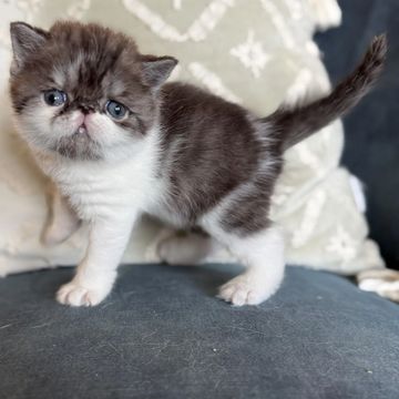 Noah is a male brown patch bi-color black and white tabby. Noah's mother is Willow and he sire is Asher. He was born 9/13/2025