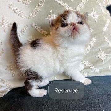 Mollie was born 9/13/2025 and is a female Exotic short hair. She is very sweet and loves to be on a lap. Her mother is Willow and her sire is Asher.
